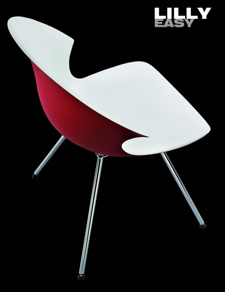 LILLY je elegantní židle se sedadly s polypropylenu a ocelovou lakovanou, chromovanou nebo nerezovou konstrukcí. Nohy jsou zakončeny kloubovými dosedy, které je možné dodávat černé, chromové nebo transparentní. Sedadla mohou být v níže uvedených barvách nebo kombinována s bílou na vnitřní straně. Obě modifikace (caffe a easy) jsou velmi pohodlné, využitelné jak ve veřejných prostorech, tak v domácnostech.